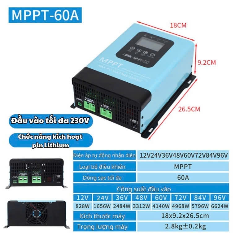 Điều khiển sạc năng lượng mặt trời MPPT 60A sạc được nhiều loại điện áp
