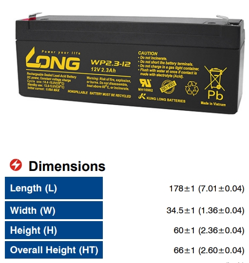 Ắc quy kín khí Long 12V-2.3Ah WP2.3-12