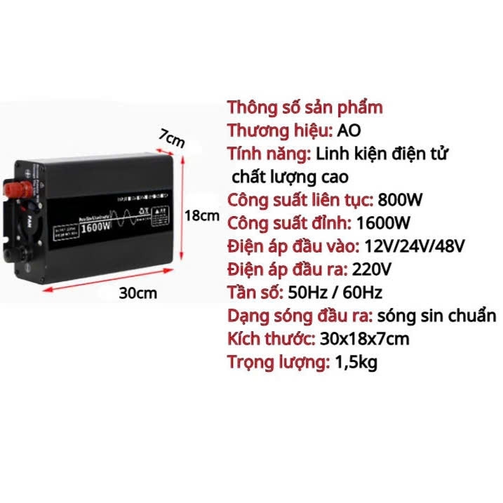 Bộ chuyển đổi điện sin chuẩn 1600w 48v AO1600W-48V