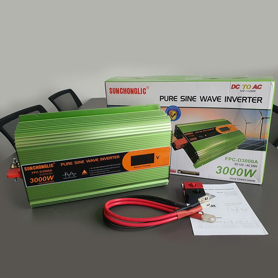 Bộ chuyển đổi điện sin chuẩn 3000W 12V sang 220V có màn hình hiển thị hãng Sunchonglic