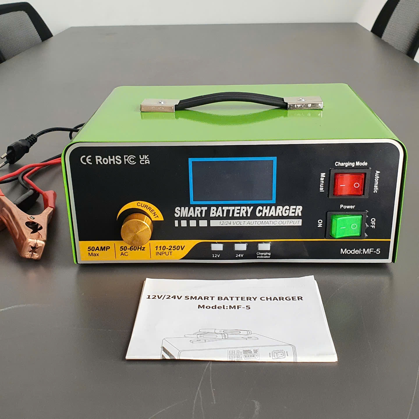 - Dùng để sạc tất cả các loại ắc quy axit 12V24V (ướt, MF, gel, VRLA và ngập nước).